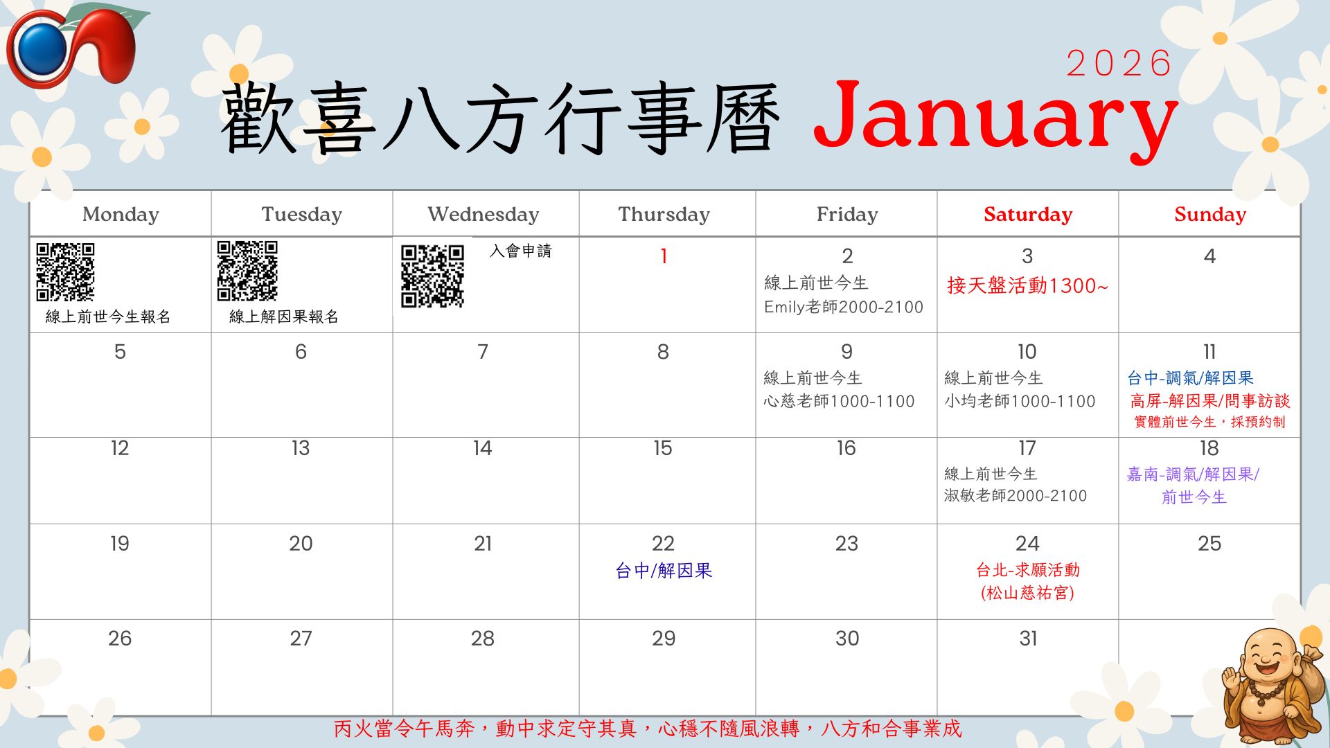 2026年【1月份】行事曆